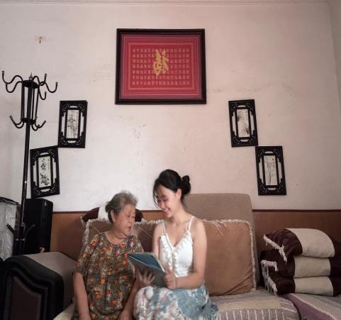 图为“青梦载新芽-芽哩个芽队”团队在采访老人
