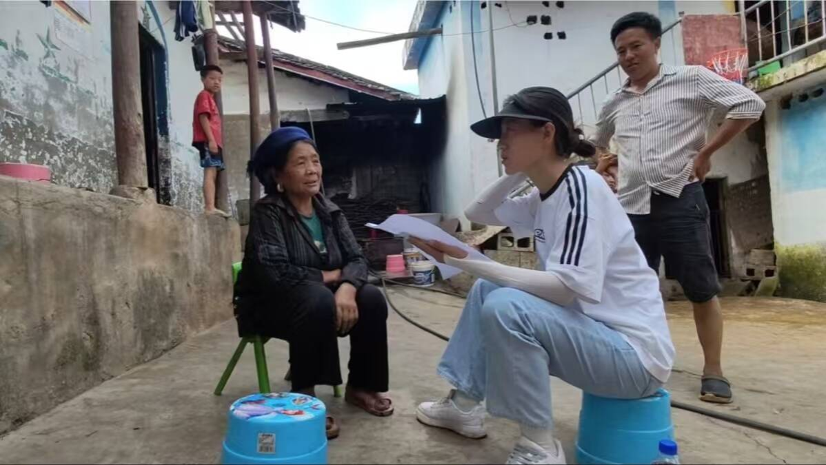 图为团队成员调研蚕桑种植农户
