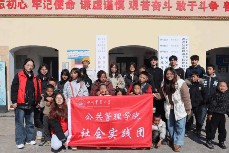 暖阳铺洒在大杉坪村村委会的院坝上,队员们与彝族孩子簇拥在实践团红旗上,笑容如暖阳一般,打破了冬日的严寒。彝乡孩子黝黑的皮肤显示出坚韧不拔的民族精神,队员们温和的微笑带着初到彝乡的热情,快门按下的瞬间,原本陌生的距离感在笑声里消融不见。这是暖冬成长营故事的起点,同时更是一场温暖奔赴的开端。这一刻起,志愿者们不是坐在教室里的学生,而是循循善诱的老师,他们将把知识和陪伴带到课堂,用有趣的活动温暖冬日的彝乡。一面志愿旗,一群伙伴,一场跨越千里,奔赴山海的约定,都在这张合影里定格为最动人的序章。后期的课堂上,队员们将带孩子们探索科学的奥秘,文化的魅力,点滴的陪伴也会将他们化作孩子们眼中的光,照亮他们走向更好的未来。