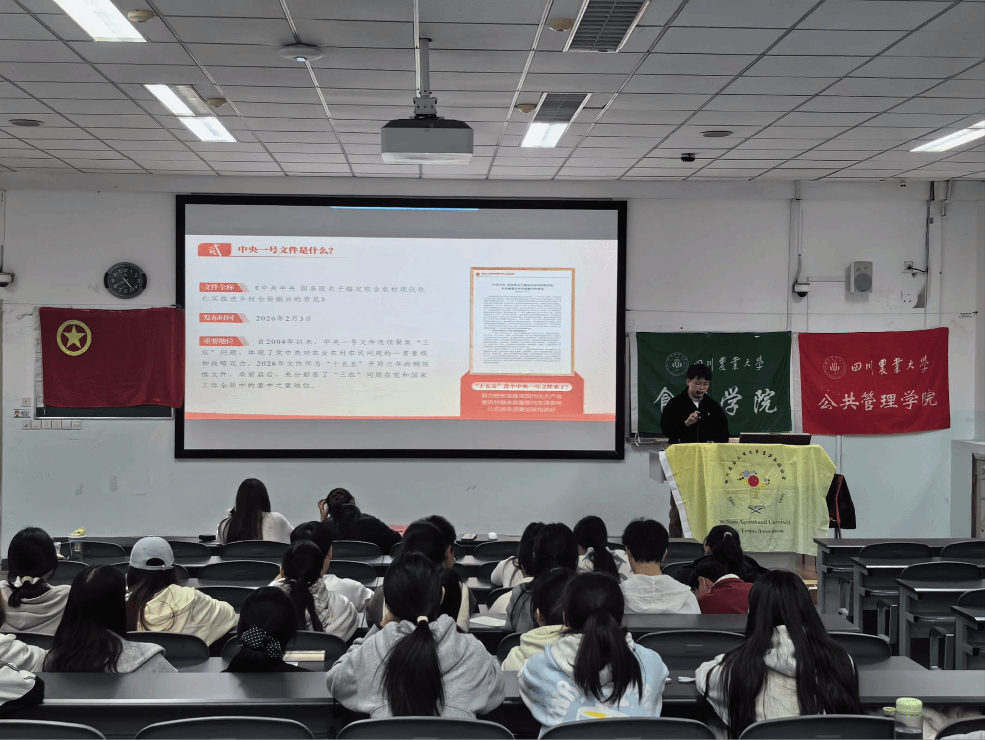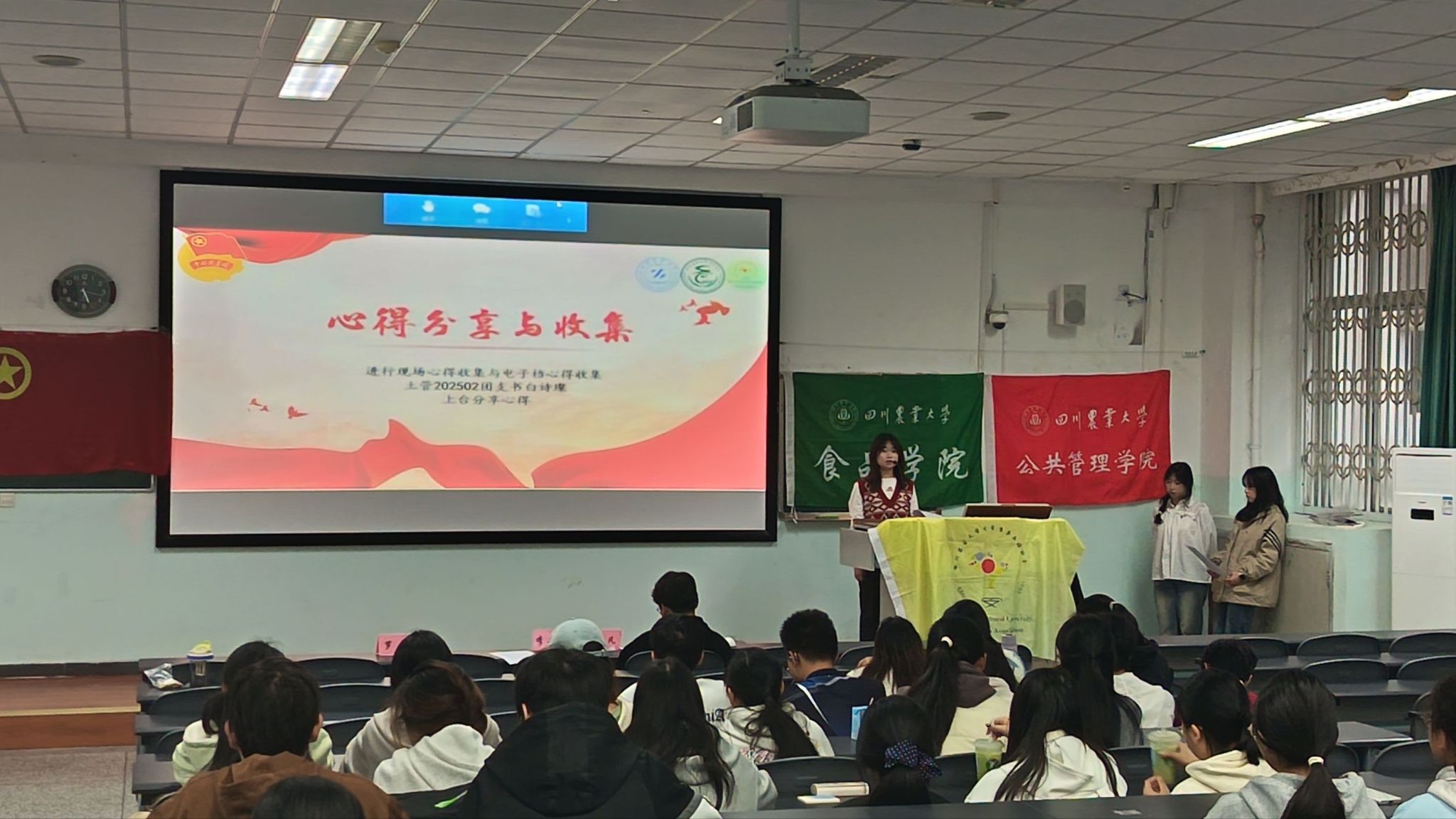 3月27日下午,公共管理学院农发202403团支部、农发202503团支部、土管202502团支部与食品学院食质202401团支部、食工202504团支部以及大学生体育协会乒乓球小组流动团支部,在四川农业大学雅安校区10-A103联合开展“感悟两会精神,喜迎百廿芳华”2026年3-4月主题班团活动,活动以两会精神学习、校史重温、实践交流为核心,引导青年学子坚定理想信念,以实际行动迎接学校百廿校庆。
