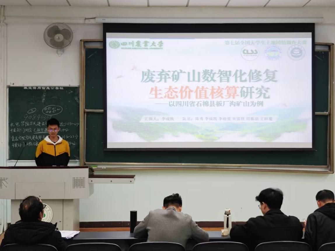 聚焦土地国情,激荡青春智慧。11月12日,四川农业大学第二届 “研土有你”土地国情调查大赛决赛在雅安校区10教A402教室圆满落幕。本次大赛由教务处主办,公共管理学院承办,来自土地资源管理系、农村区域发展系等有关教师担任评委。经过评审答辩,“地情先锋队”和“天生一队”两支队伍脱颖而出。