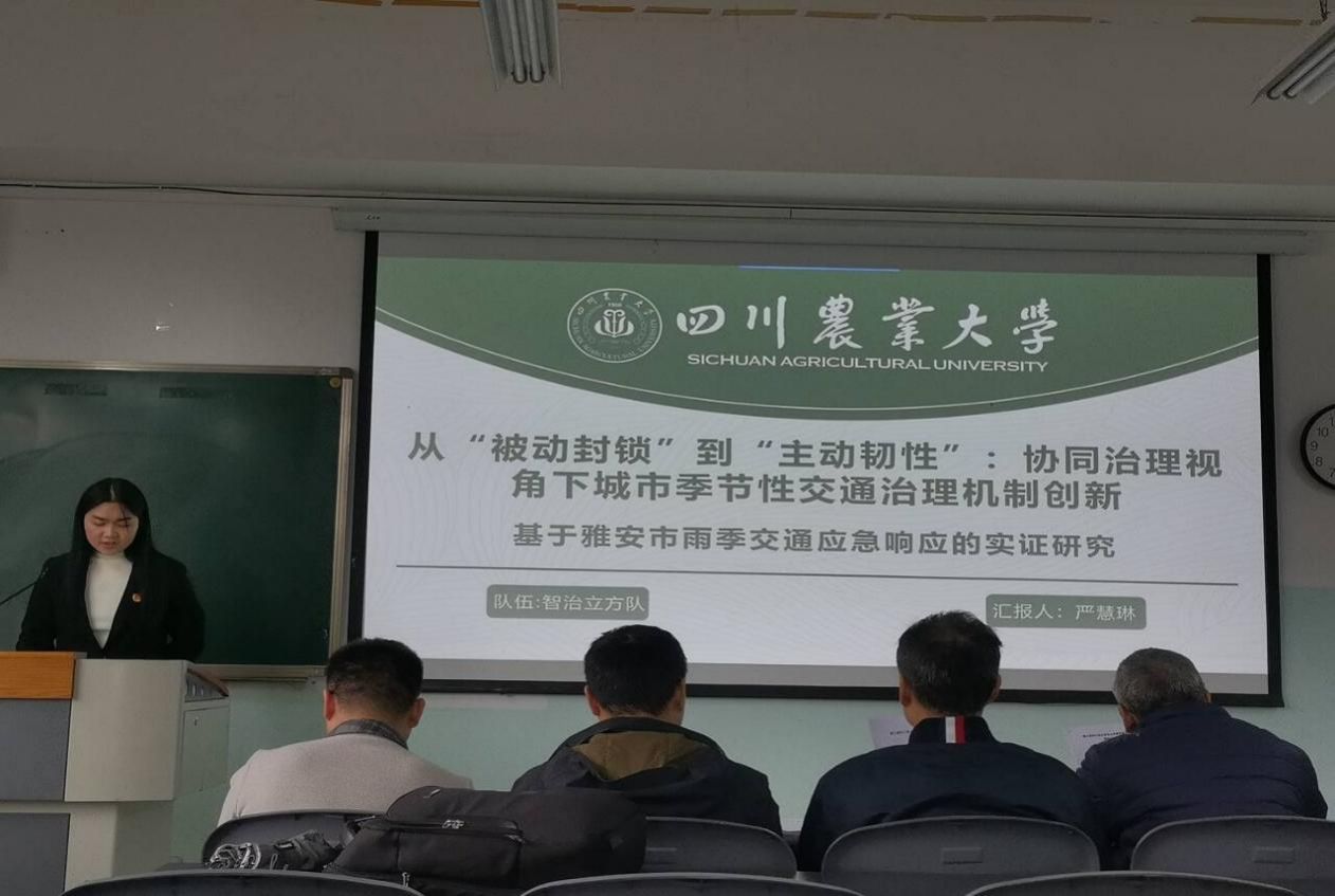 以案例为境,照见未来治理。2025年11月17日,四川农业大学第一届公共管理案例挑战大赛在雅安校区1教511教室圆满落幕。本次大赛由教务处主办,公共管理学院承办,由来自学院各系的张劲松教授、岳龙华教授等相关专家担任评委。经过评审答辩,绿野犇腾探索队、智治立方队、"治"行合一队三个队伍脱颖而出。
