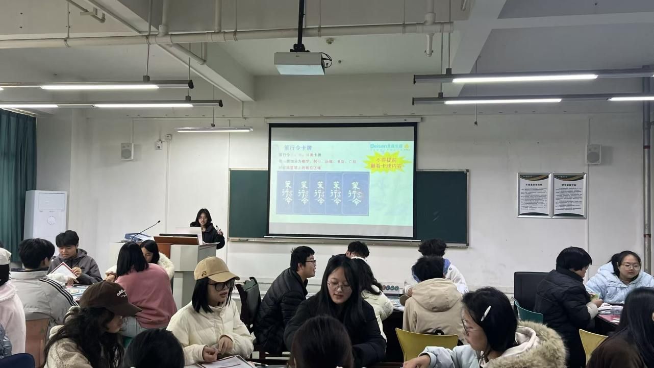 本次活动基于北森笙芽学府沙盘“规则导入—模拟体验—复盘分享”标准化流程,结合学院学科专业特色进行院本化改造,巧手创造出富有学科印记的人物卡、传送令等创意道具。在引导师的带领下,同学们化身为“笙芽学府”的“求学弟子”,模拟大学四年从专业认知、技能培养到岗位适配的全周期成长之旅,进行“初探学府、渐入佳境、深造精进、登峰造极”四轮体验式、沉浸式闯关游戏。