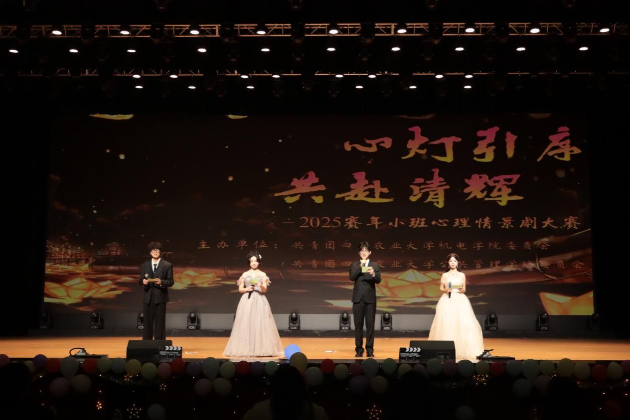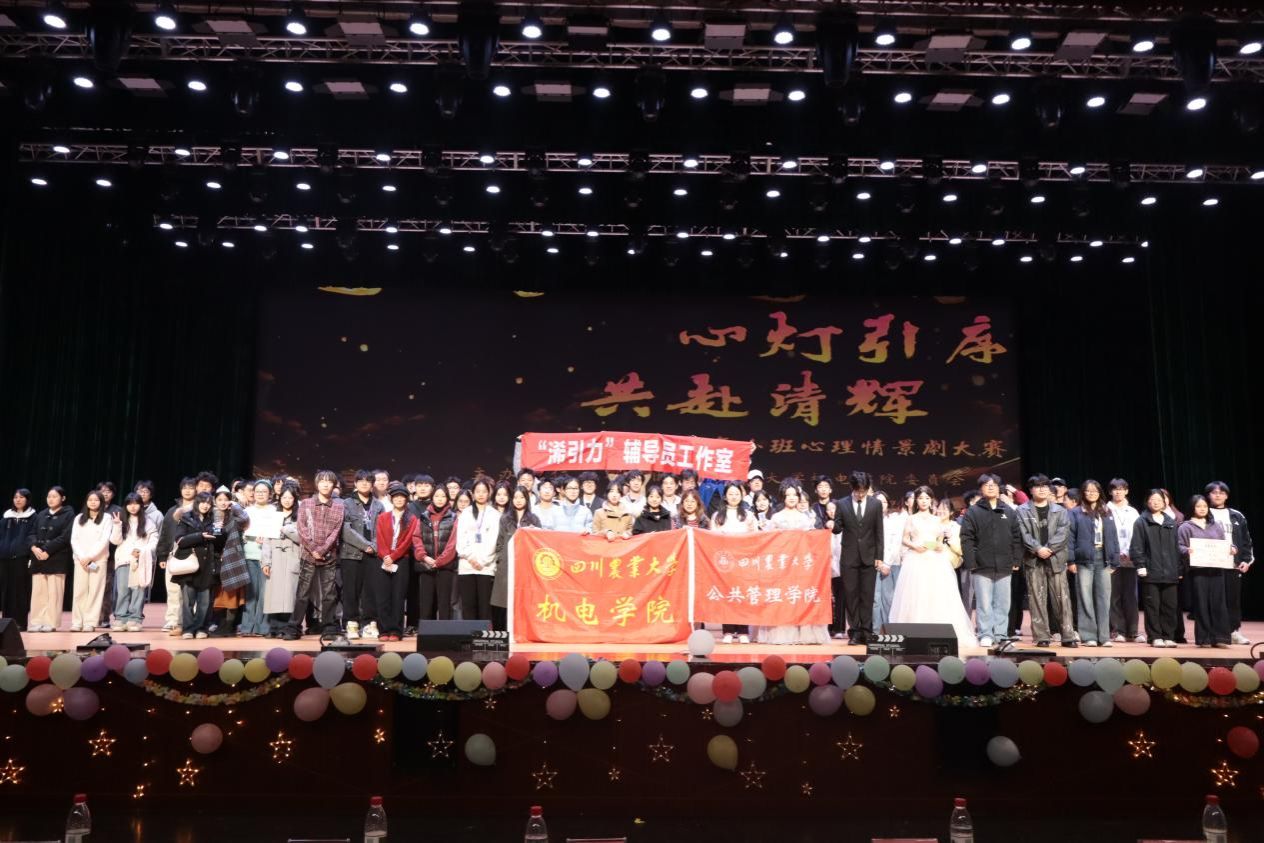 3月15日晚,由共青团四川农业大学公共管理学院委员会、共青团四川农业大学机电学院委员会联合主办,公共管理学院心理健康服务部、机电学院学生会办公室共同承办的“‘心’灯引序,共赴清辉”心理情景剧大赛在雅安校区体育馆顺利举行。公共管理学院党委办公室老师陈浠,机电学院党委办公室老师唐诗怡以及两院主席团成员担任评委。