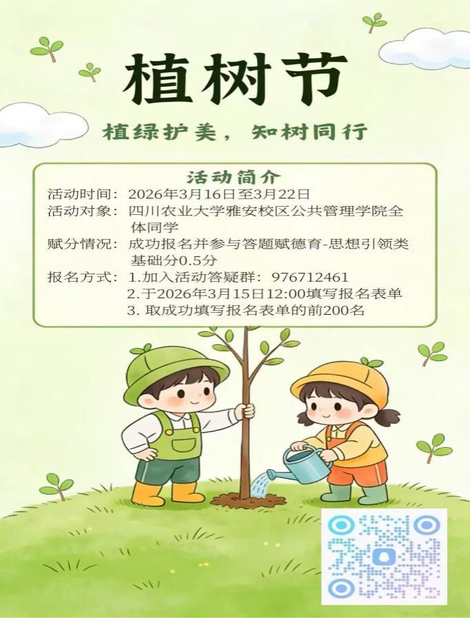 为普及生态环保与树木养护知识,增强大学生绿色责任意识与实践能力,3月16日至22日,公共管理学院学生权益部面向全院学生组织开展了“植绿护美,知树同行”线上环保知识竞答活动。本次活动通过易班平台进行,吸引了众多同学积极参与。