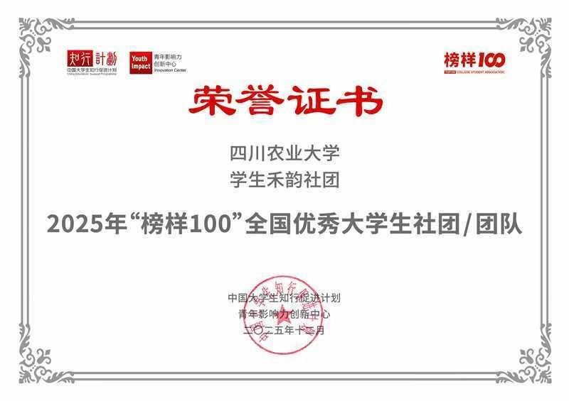 近日,2025年度“榜样100”全国大学生优秀案例榜单正式公布,我院学生禾韵社团凭借扎实的项目成果,锐意进取的创新精神以及文化育人与社会实践相融合的服务模式,从全国众多优秀团队中脱颖而出,成功入选。