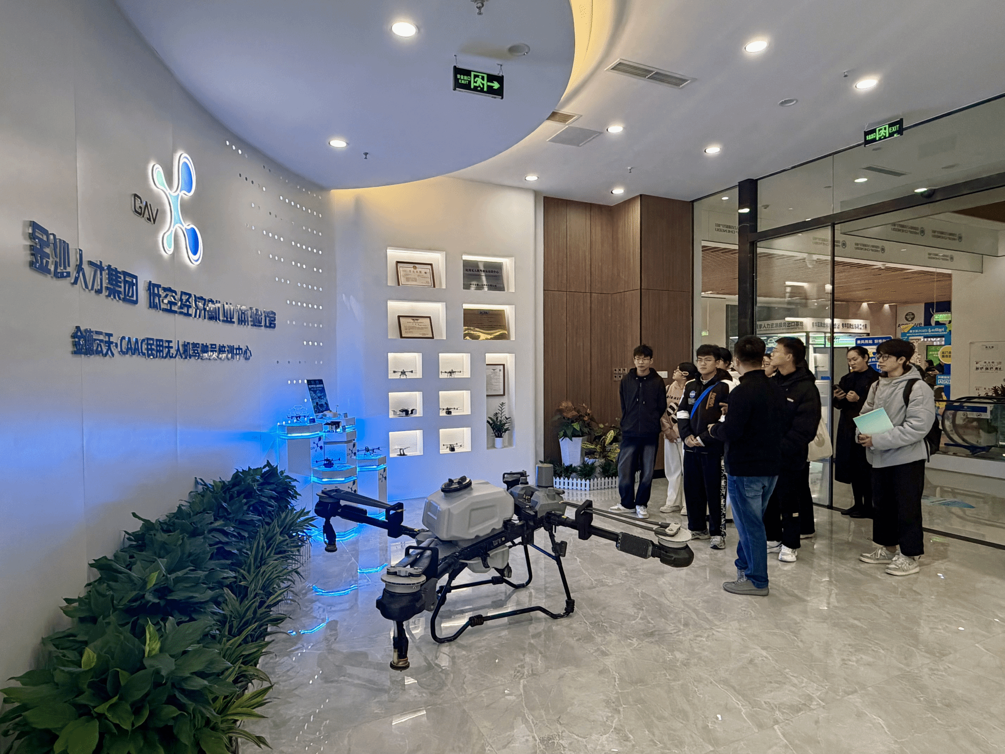 师生一行在四川省创新共同体人才服务有限公司市场运营部经理张根莱的带领下参观了产业园智能招聘大厅、金沙人才集团低空经济就业体验馆。通过张经理的现场讲解,对人力资源服务业的发展现状及其助力低空经济产业发展的路径有了深入了解。在园区会议室,张根莱为师生带来了主题为《AI应用对人力资源服务业的影响》的主题讲座,并带领师生到企业进行现场参观和调研。