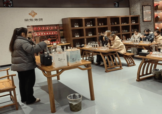 下午,师生一起走进了金六福酒厂。从原料仓储,到制曲发酵,再到成品储存,完整见证了白酒生产工艺流程。在调酒体验环节,同学们将课堂所学的产业链、价值链等理论与真实的产业场景相结合,直观认识到特色产业对带动就业、促进三产融合的重要作用。