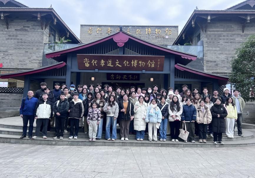 陈晓旭为师生们讲述了春台历史故事、社区变迁,当地乡村规划师深度解读了春台片区“一核两带三区”的空间规划格局,让同学们深刻认识到,乡村振兴是关于产业发展布局、人口流动、生态保护与文化传承的系统性工程 。随后,师生们走进邛崃市社会主义核心价值观教育基地——孝道文化博物馆,通过陈列文物和布设场景等方式,一个个孝道人物故事映入眼帘,这些孝道典范给大家带来触动的同时,同学们体会到传统文化中蕴含的伦理价值与治理效能。